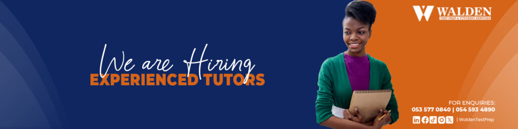 Walden Tutoring Service is a fast-growing educational company in Ghana providing one-on-one tutoring and test prep services across the country. We’re currently expanding our team and seeking qualified, passionate, and dependable tutors.